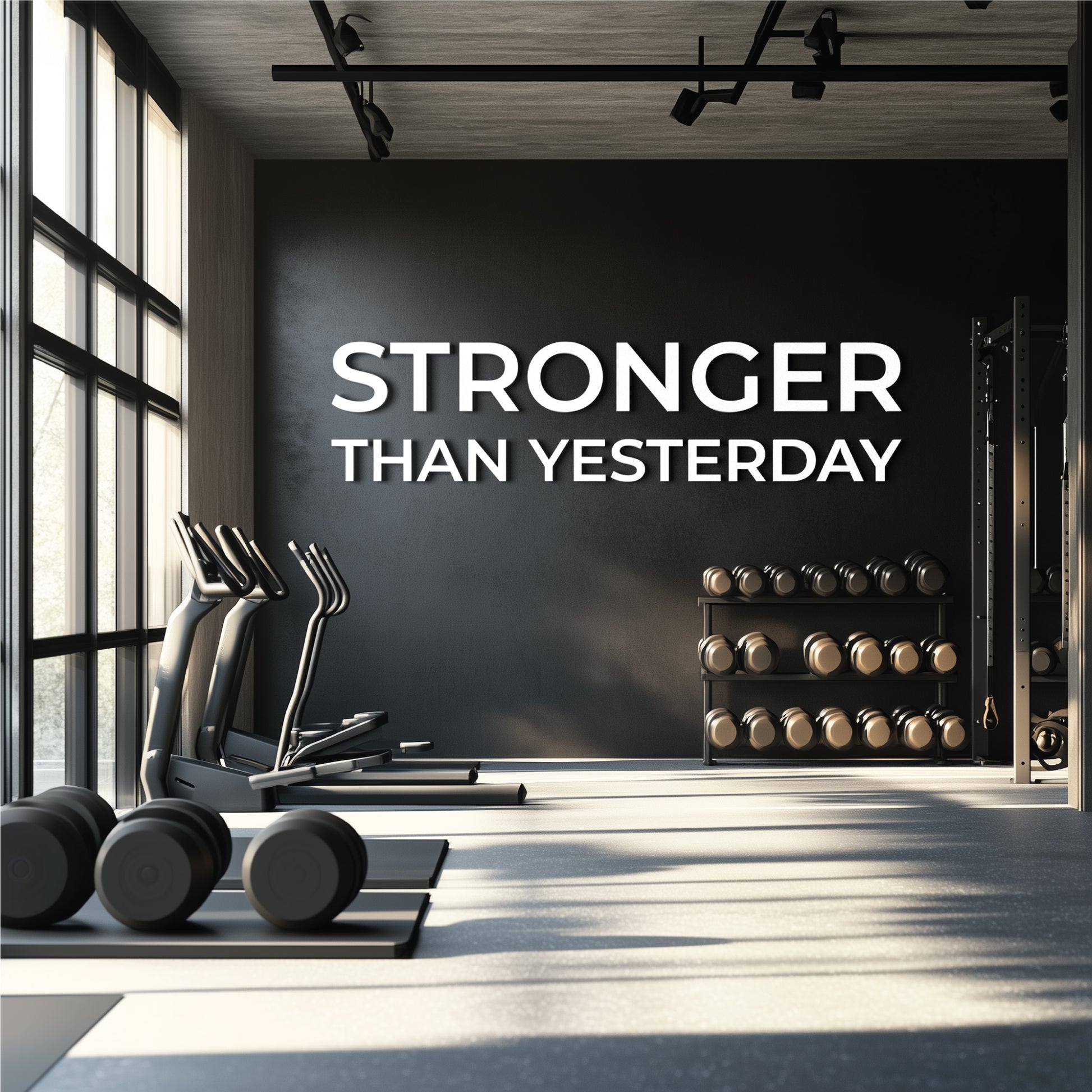 Gym Wall Letters - Stronger Than Yesterday - for Home Gym, Fitness Studio, or Gym Decor - PVC Motivational Wall Art
